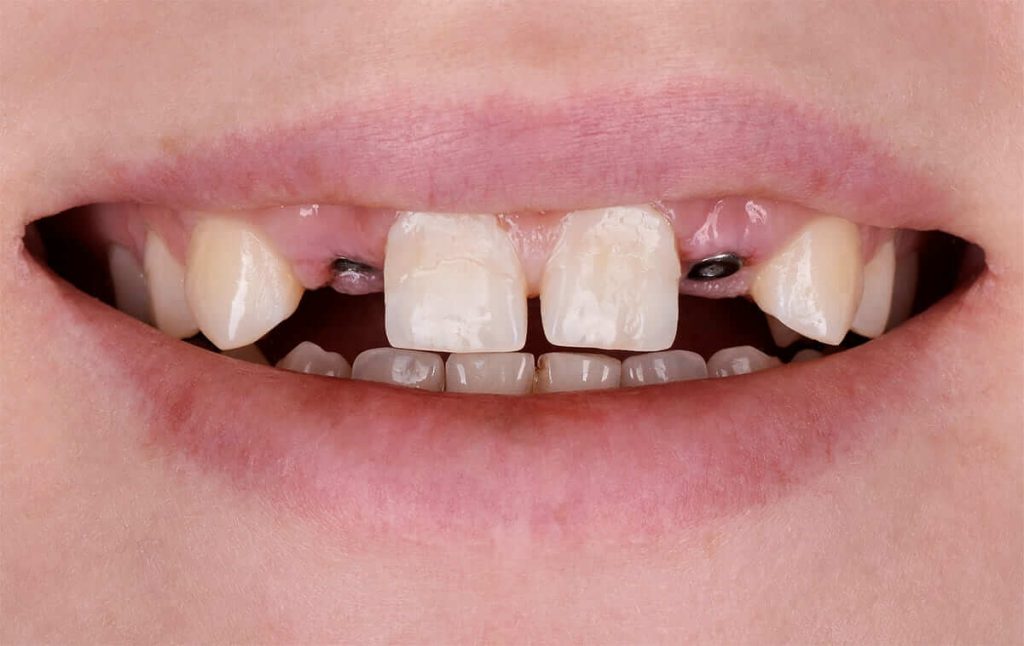 - A patient after orthodontic treatment turned to the dental clinic with a request to obtain permanent restoration in place of the missing maxillary lateral incisors.