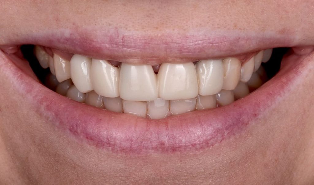 Prosthetics on implants of front teeth installed after a car accident