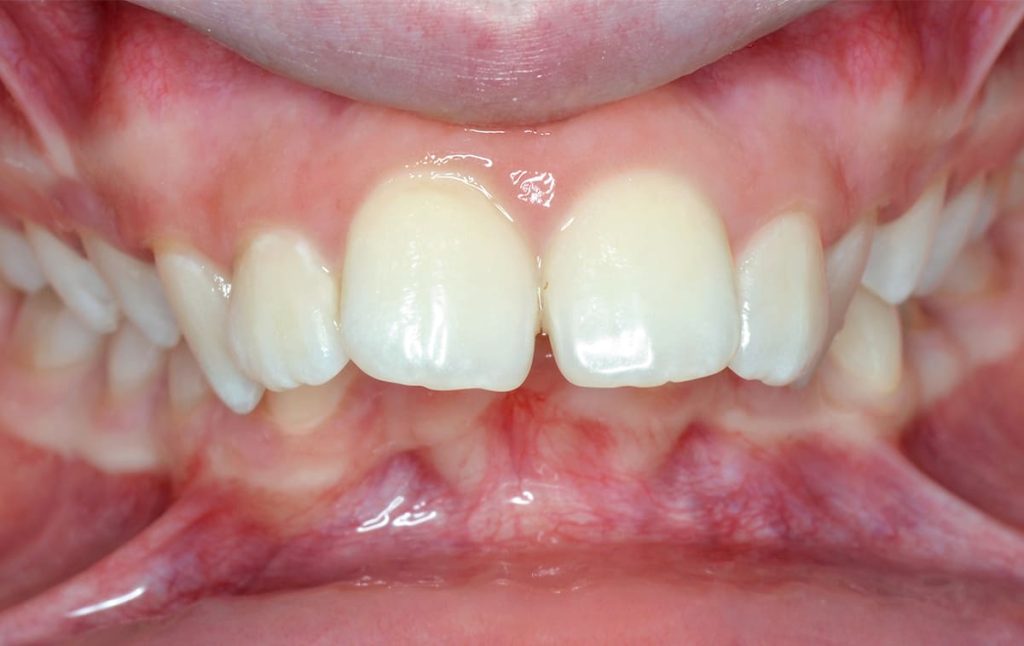 - Our orthodontist diagnosed a traumatic deep distal bite, narrowing of the dental arches. Crowding of the teeth of the upper and lower jaws. The shallow vestibule of the mouth, and underdeveloped lower jaw.